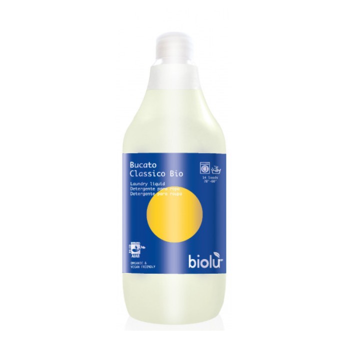 Detergent lichid pentru spalare manuala sau automata, pentru haine albe sau colorate. Cu ulei esential de lamaie din agricultura ecologica. Garanteaza o spalare uniforma, fara pete, chiar si la temperaturi scazute.