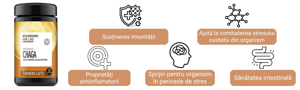 Cu ce te ajută Organic Chaga Turmeric Latte?