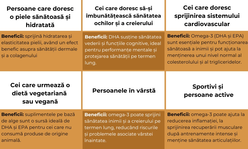 - DHA sprijină sănătatea vederii și funcțiile esențiale ale creierului
